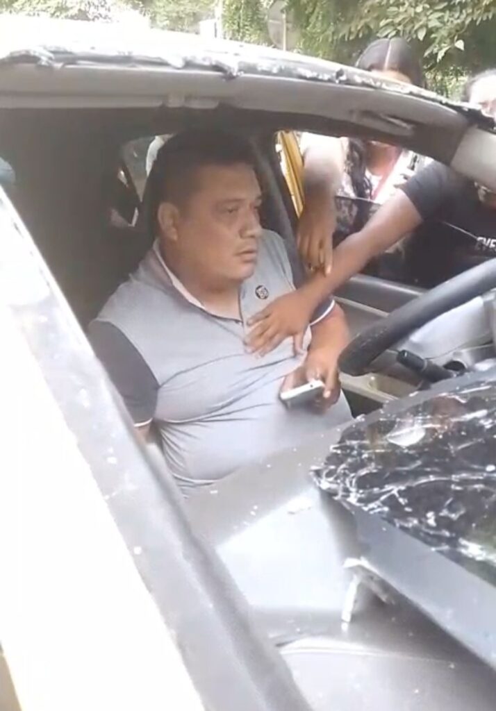 Aunque el conductor del taxi parecía estar consciente, no respondía a quienes intentaban auxiliarlo.