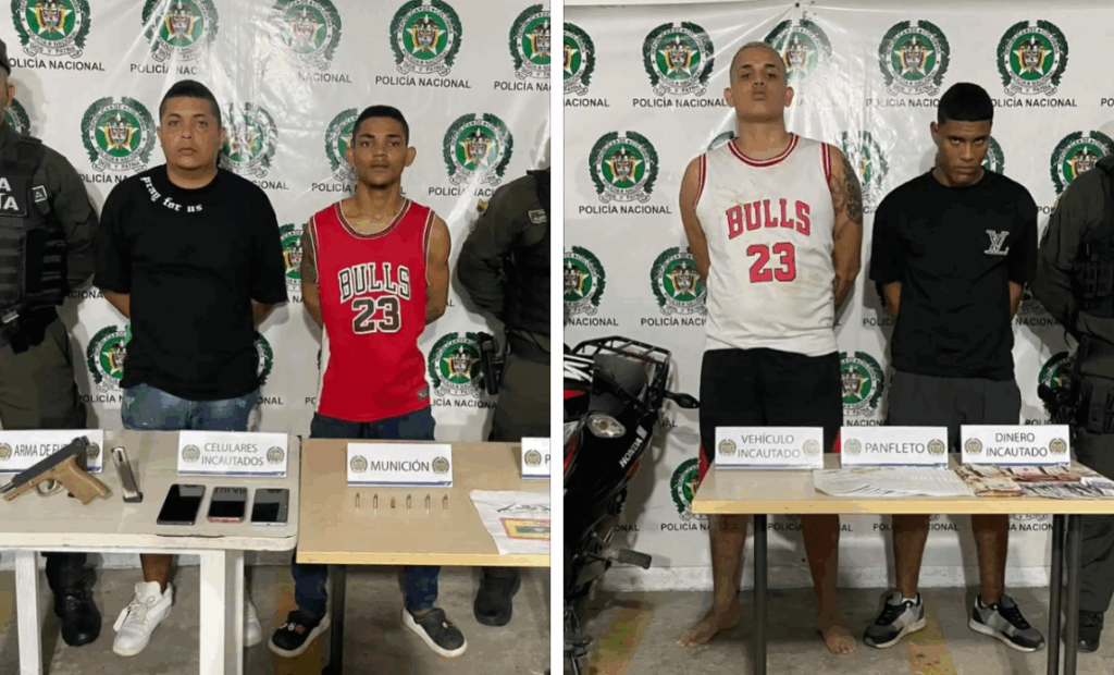 Por el lado de Los Costeños, la lista la encabezan ‘Fabito’ y ‘Chuky’, capturados en Las Gardenias con nada menos que 11 anotaciones judiciales entre ambos. Y para rematar, en el barrio El Bosque cayeron ‘Junior’ y ‘Stuart’, vinculados a extorsiones con panfletos y disparos a establecimientos comerciales.