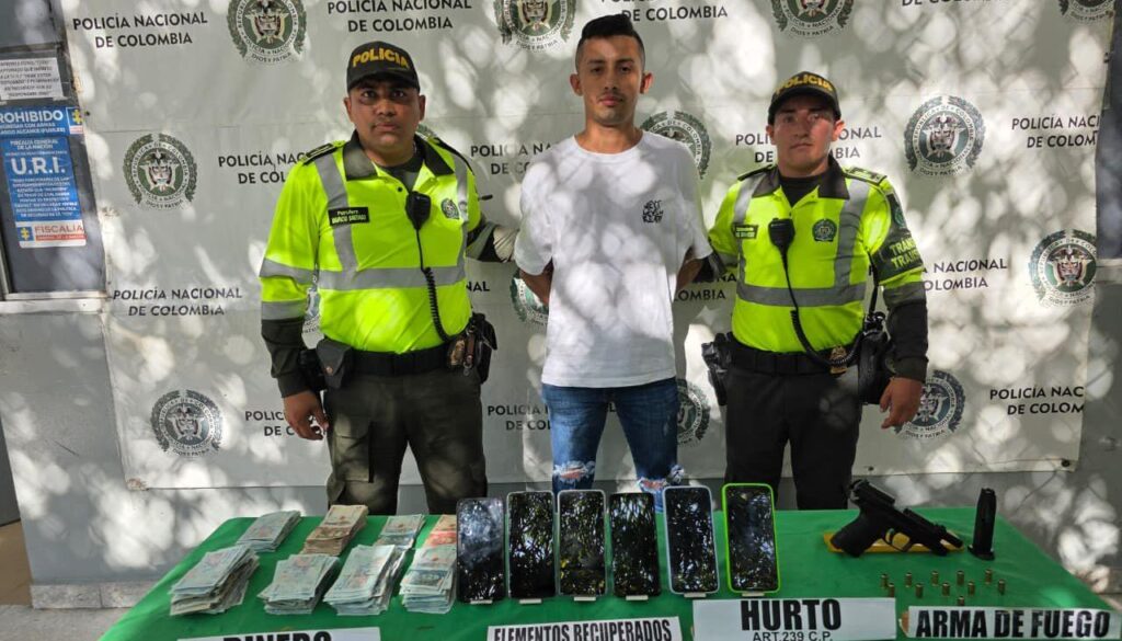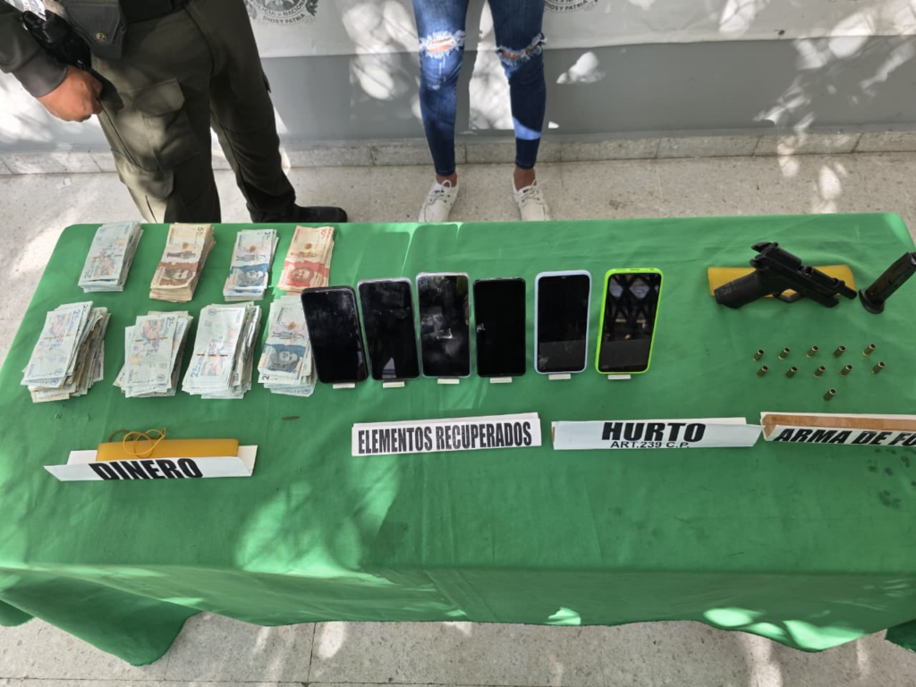 Gracias a la intervención policial, se logró además la recuperación de seis teléfonos celulares y dinero en efectivo, con un avalúo aproximado de 14 millones de pesos.